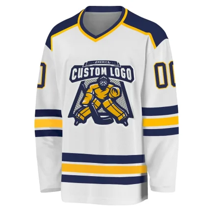 Custom Navy White-Light Blue Hockey Lace Neck Jersey