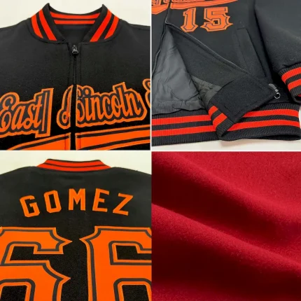 Custom Black Black-Gold Bomber Full-Snap Varsity Letterman Jacket
