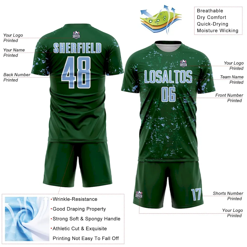 Custom Green Light Blue-Kelly Green Abstract Fragment Art Sublimation Soccer Uniform Jersey