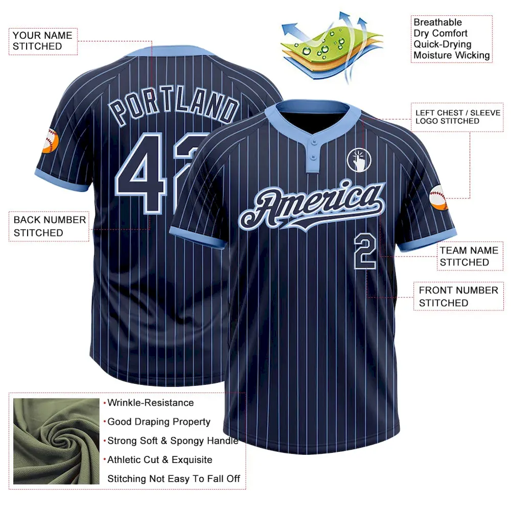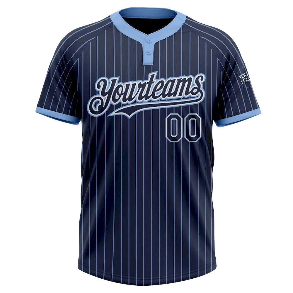 Custom Navy Light Blue Pinstripe White Two-Button Unisex Softball Jersey