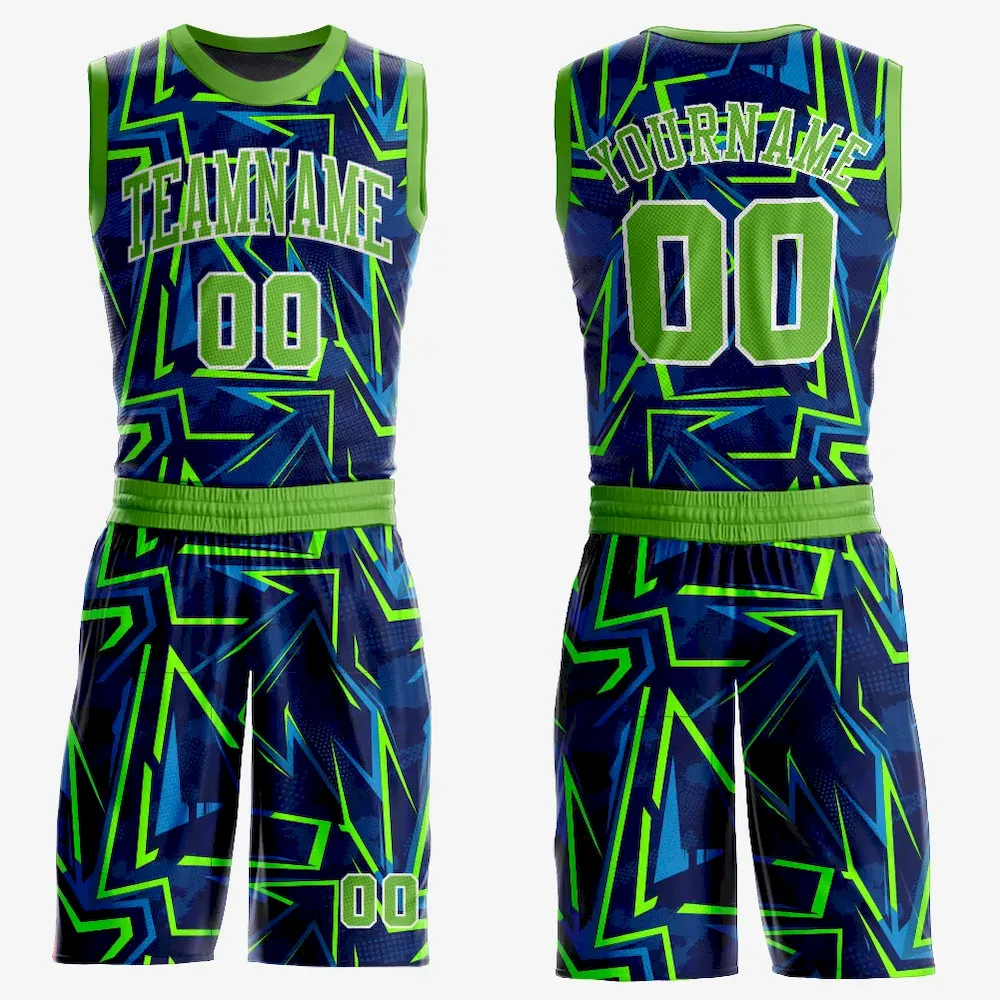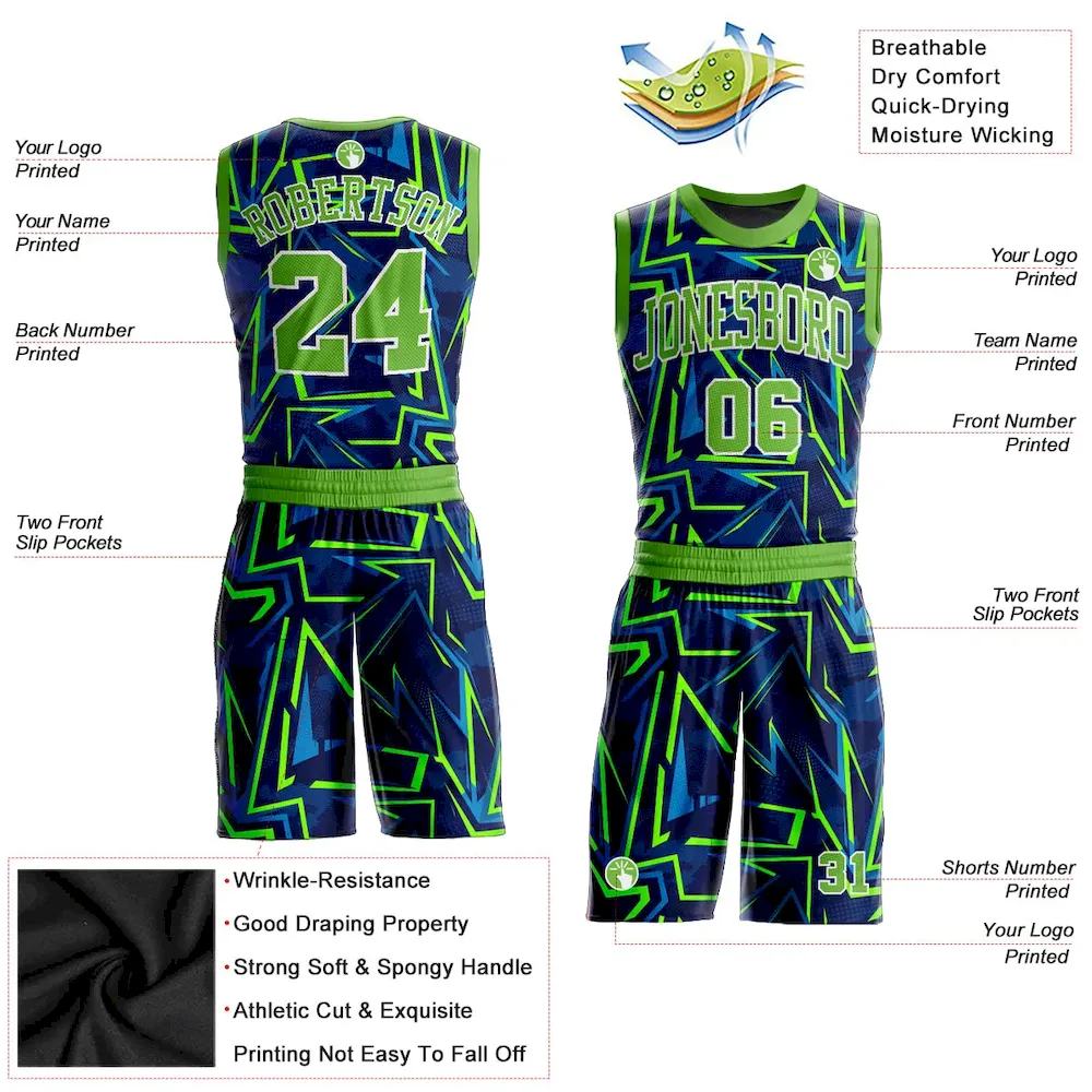 Custom Royal Neon Green-White Music Festival Round Neck Sublimation Basketball Suit Jersey