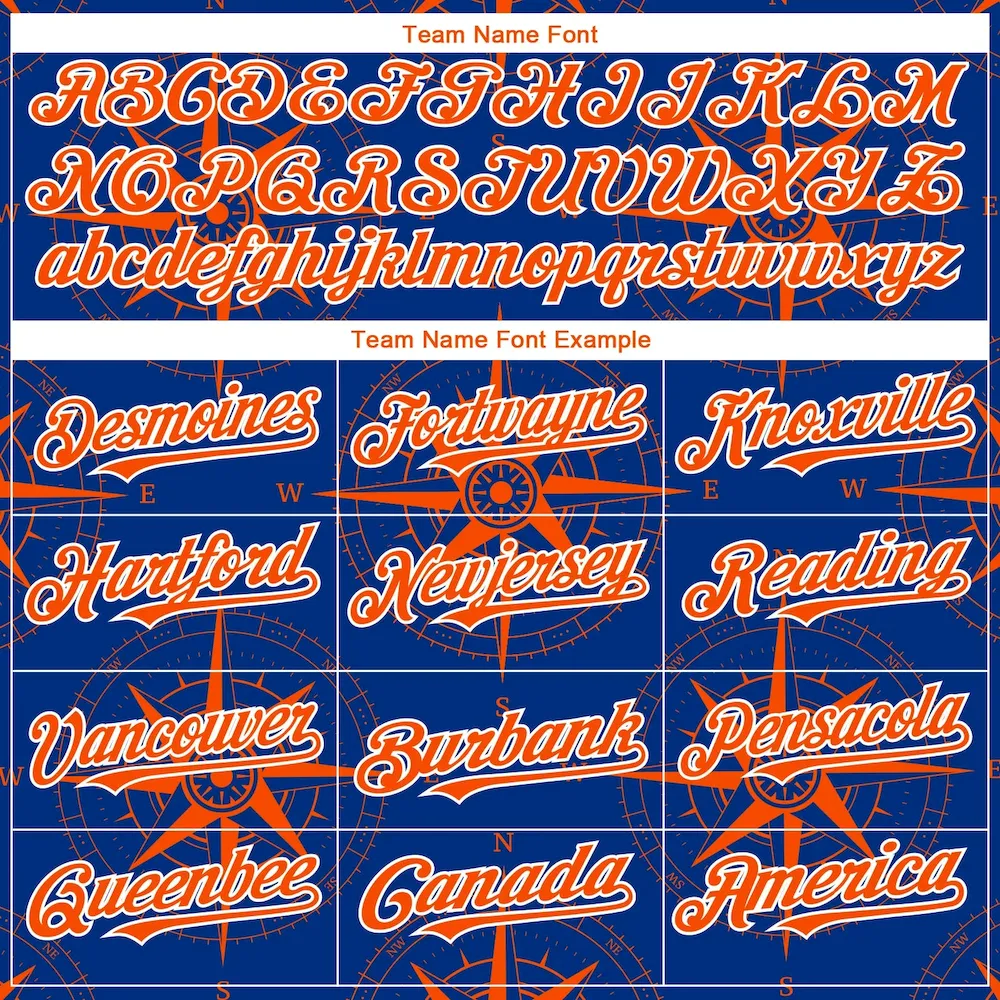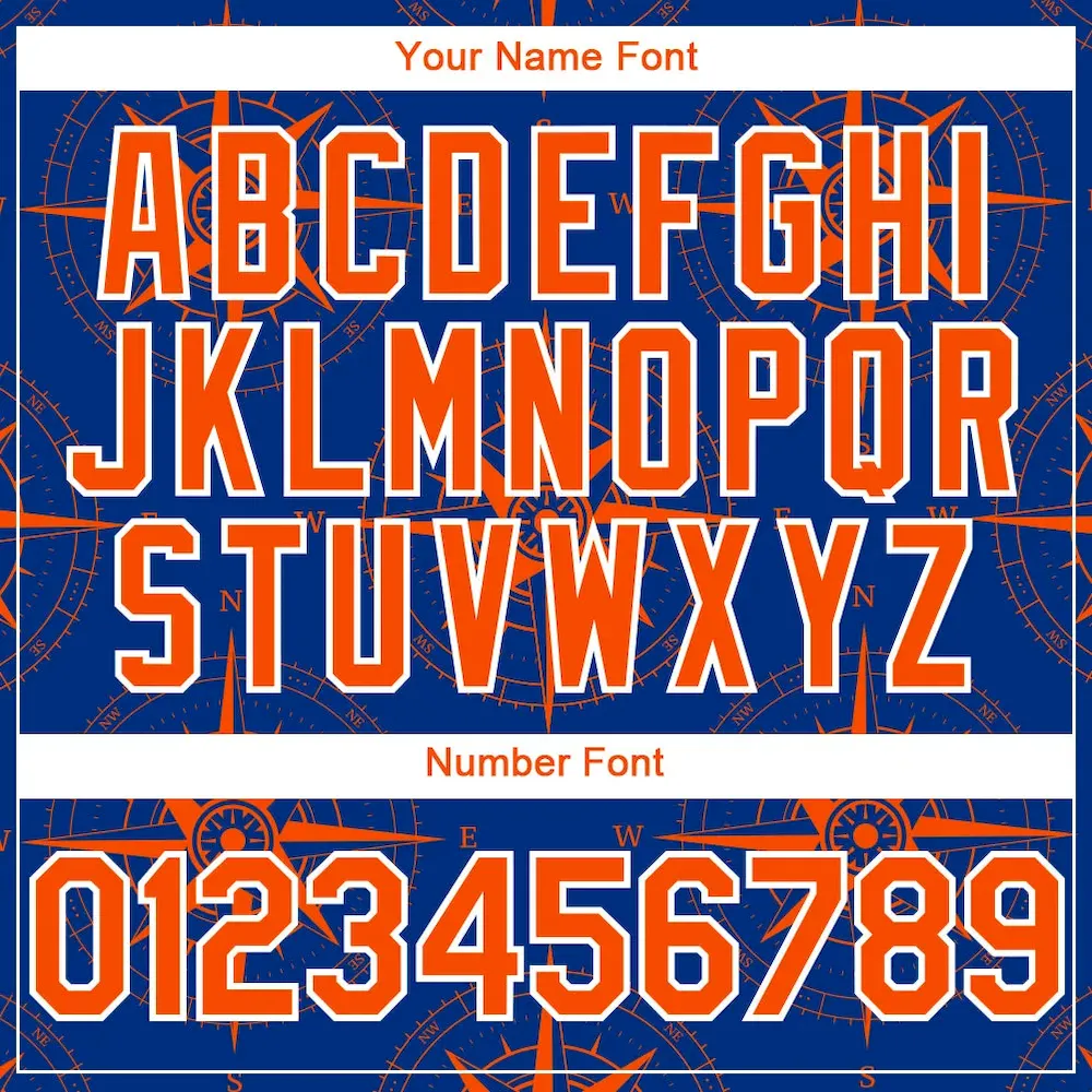 Custom Royal Orange-White 3D Pattern Design Navigation Compass Authentic Baseball Jersey