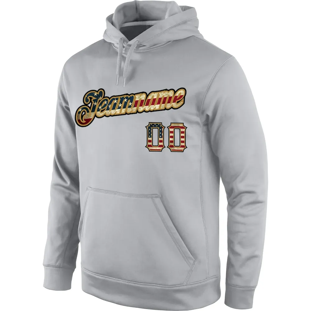 Custom Stitched Gray Vintage USA Flag-Old Gold Sports Pullover Sweatshirt Hoodie